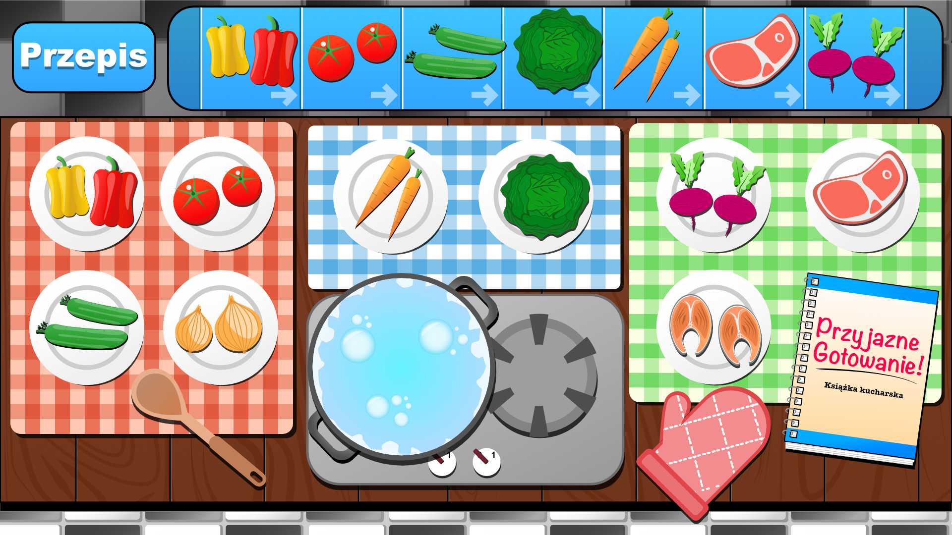 Przygotowanie przepisu polega na przeciąganiu (w odpowiedniej kolejności i odpowiednich odstępach czasu!) składników do garnka.