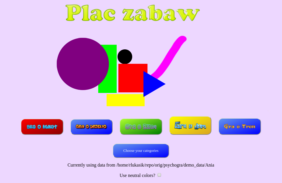* dane to pliki obrazków w odpowiednich folderach, np.: katalog „Tomek” – zawiera dane spersonalizowane pod kątem danego dziecka (przynajmniej dwie kategorie)